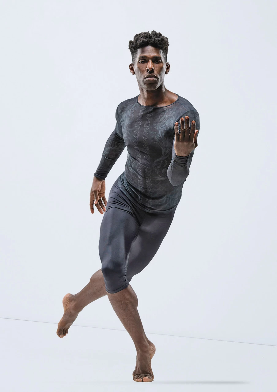 The top as bold as your moves. Misu features a classy print inspired by wings and classical architecture. Made from four-way stretch mesh that allows you to move freely and offers breathability as you dance. The long sleeve fitted look accentuates your lines for a figure-hugging and flattering fit.