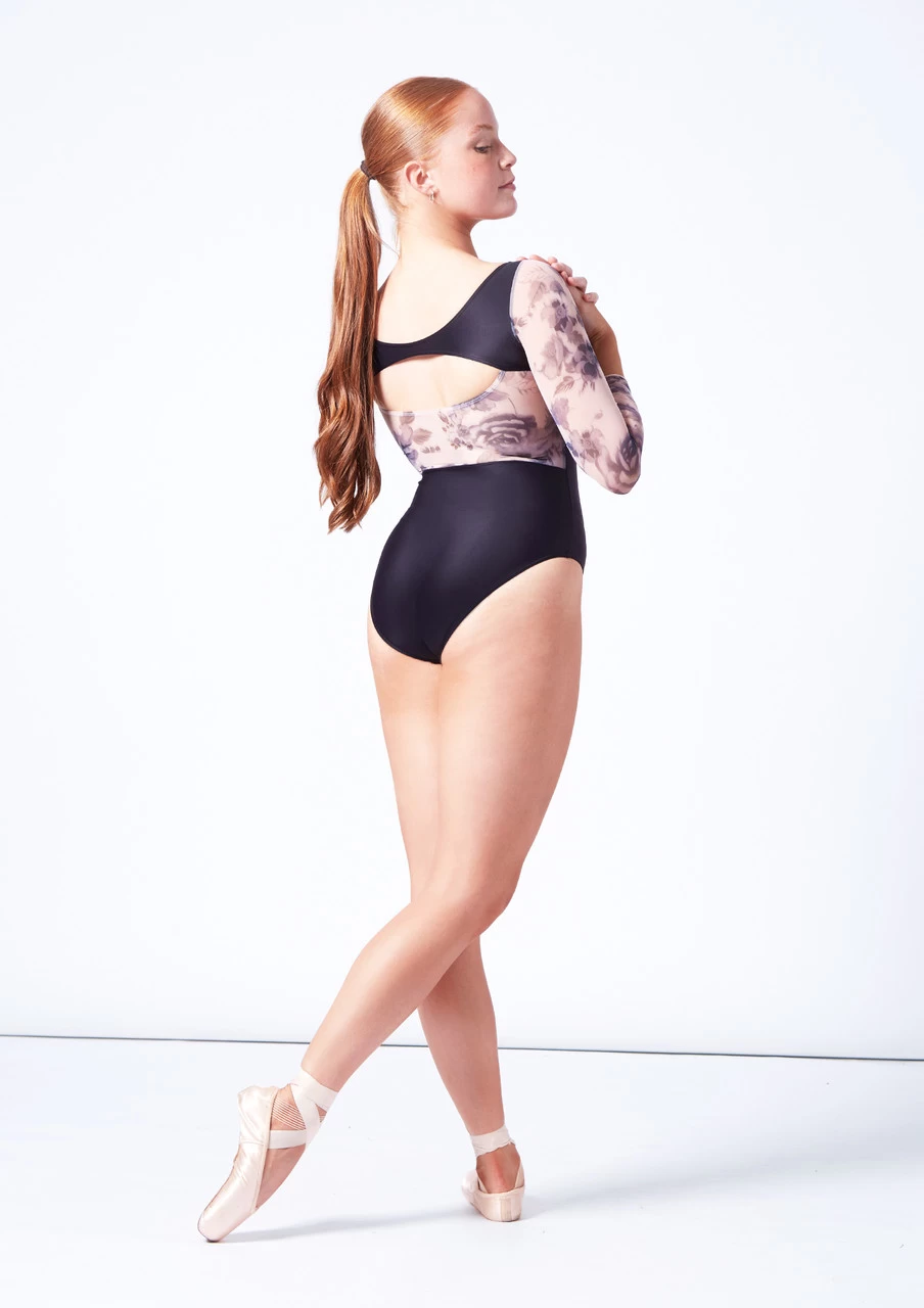 This romantic leotard from Intermezzo will take you from season to season. Made with 78% recycled polyamide, Catalina has 3/4 length sleeves with elegant floral details which continues onto a cut out panel at the back of the leotard. A classy boat neckline and cut outs at the back create a sophisticated style. Complete with shelf bra lining.