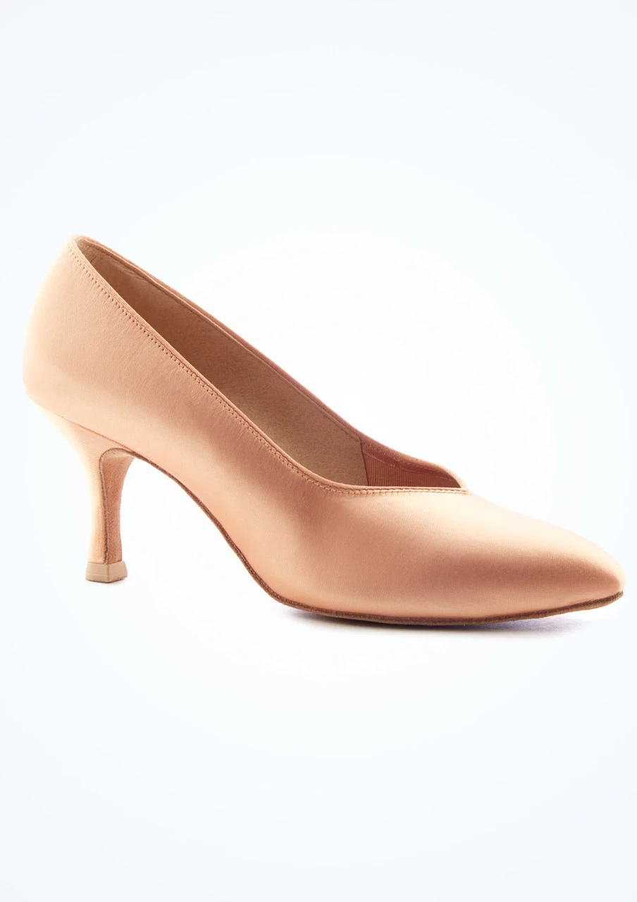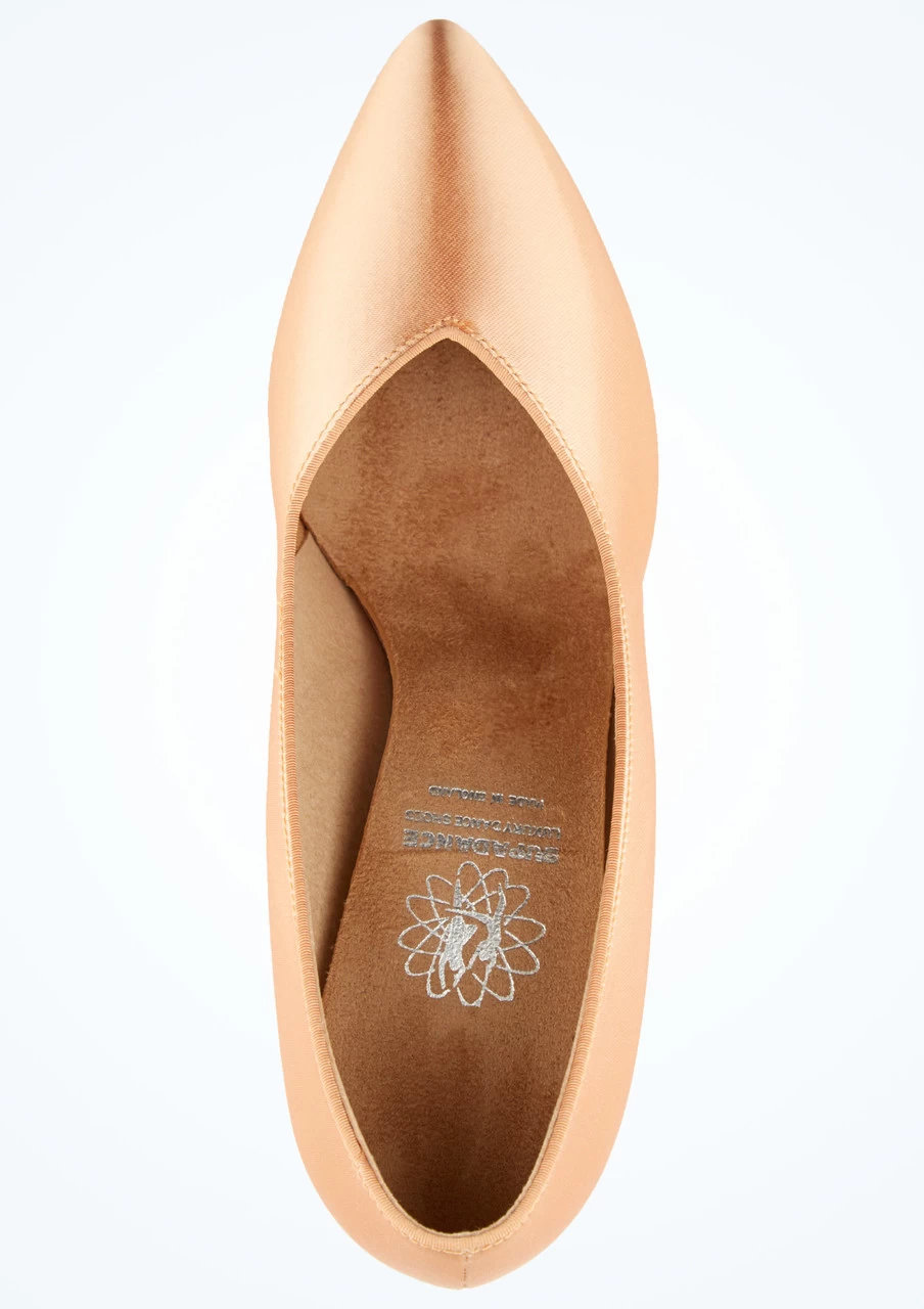 A nude satin court shoe by Supadance. The pointed toe & V shaped front make this shoe the perfect fit. Designed with a suede insole to ensure ultimate comfort. A simple yet elegant style that can be easily worn with a range of coloured costumes.