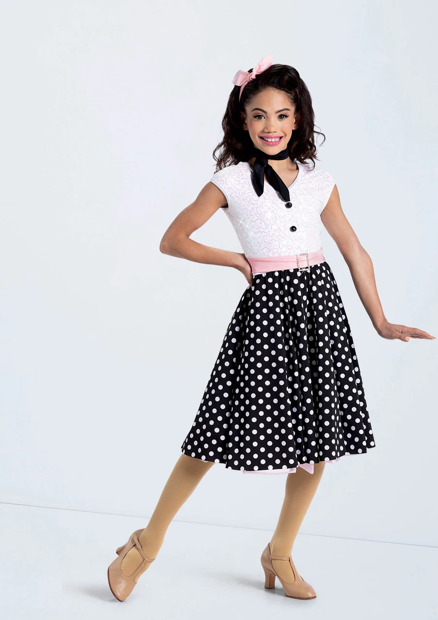 -Polka dot spandex midi skirt over tricot